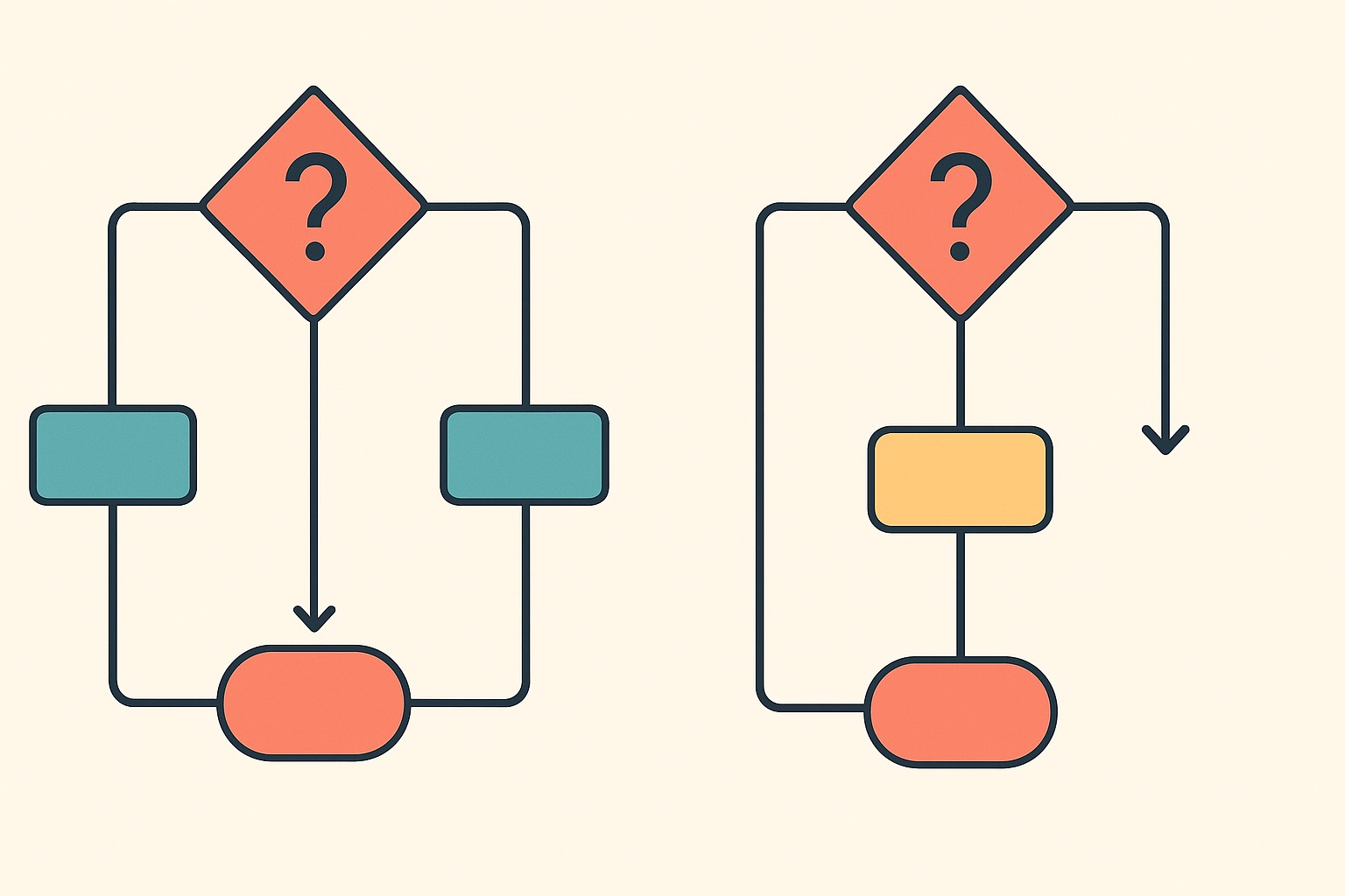 Struktur ini membuat alur menjadi konvergen — setelah if/else, alur kembali tunggal.